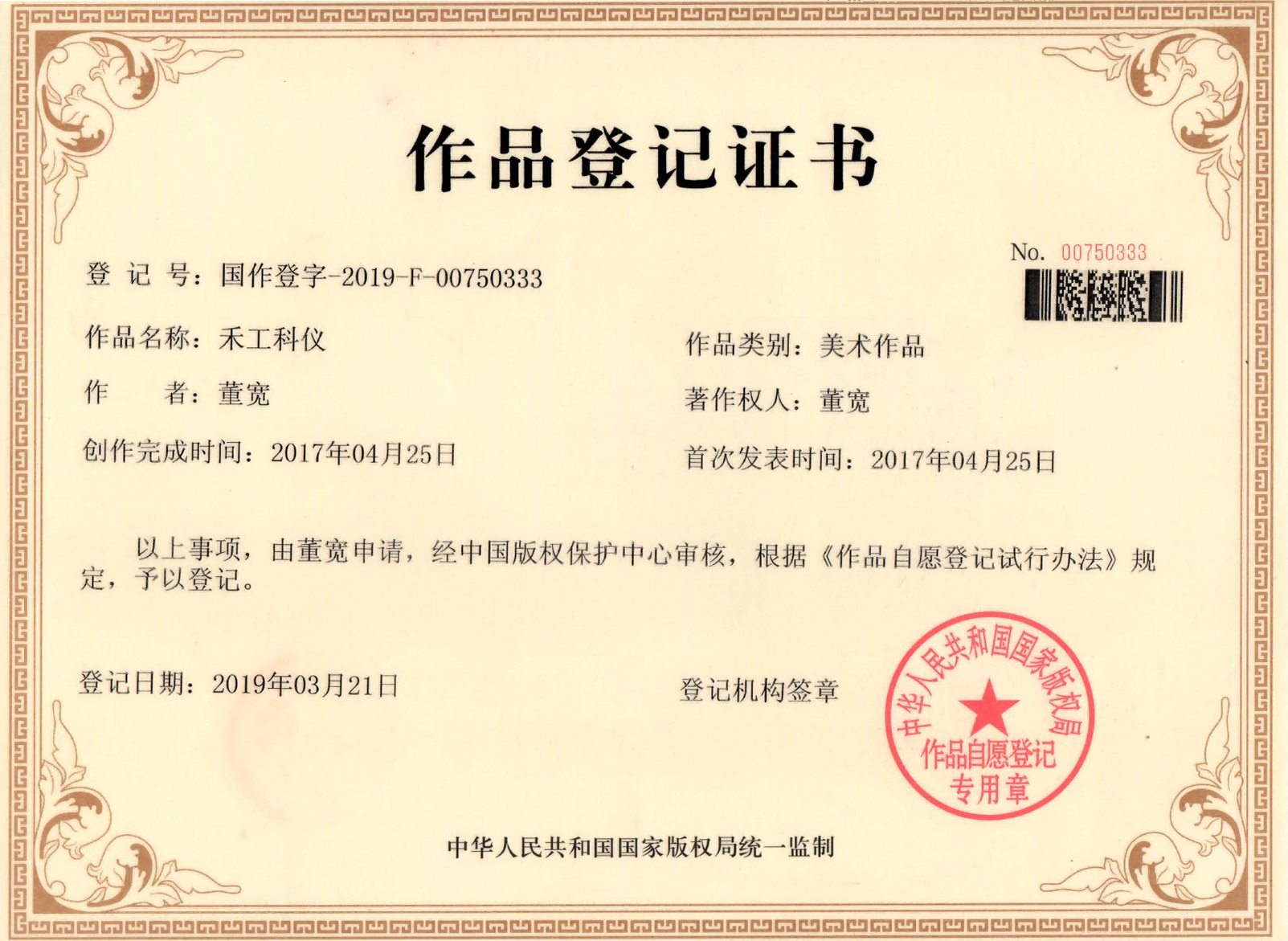 作品登記證書